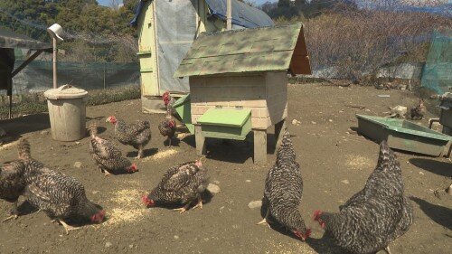 敷地内では岡崎おうはん(地鶏)がのびのびと歩き回っています。