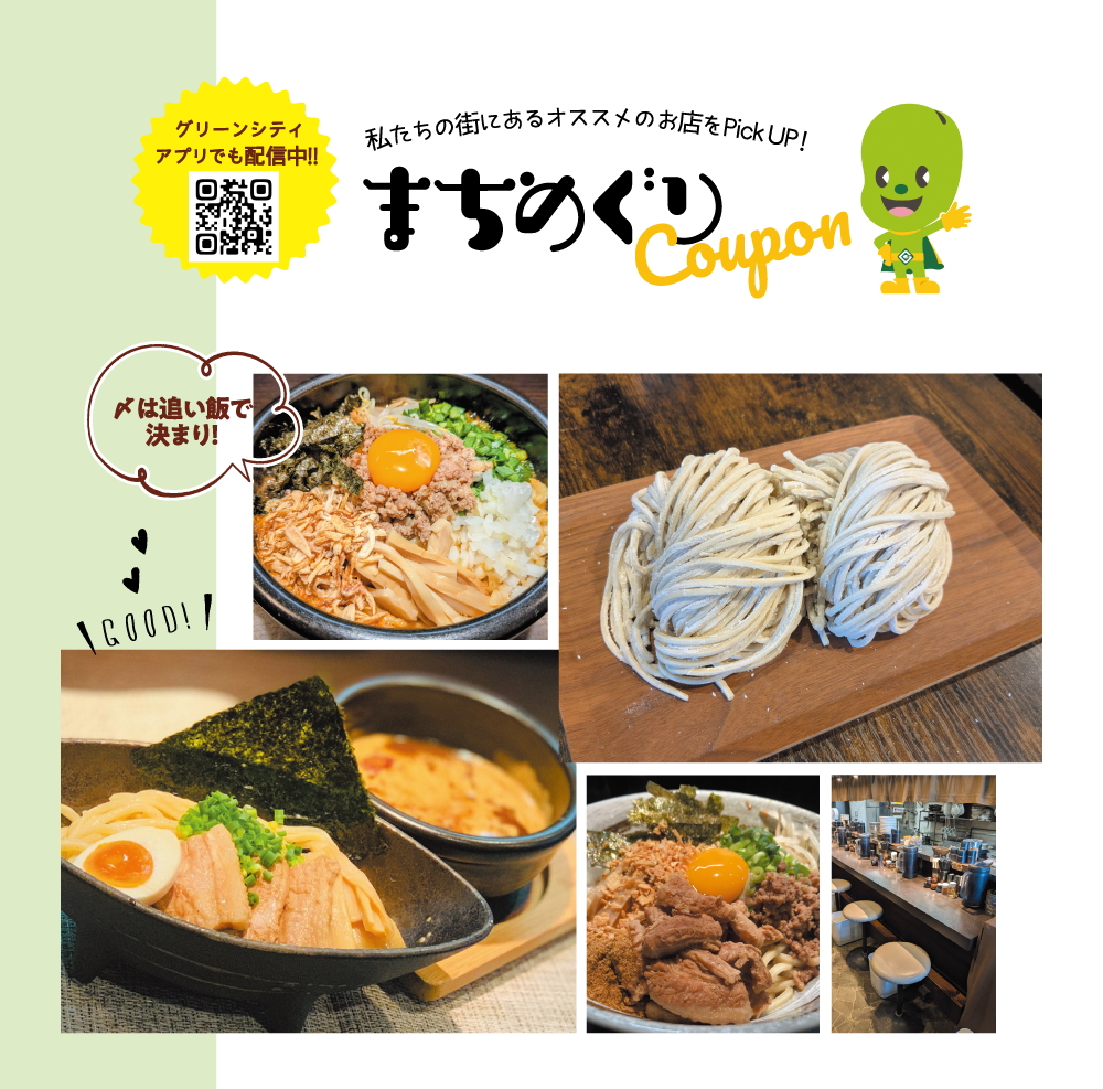 グリーンシティアプリでは、各店で使えるお得なクーポンを配信中です。