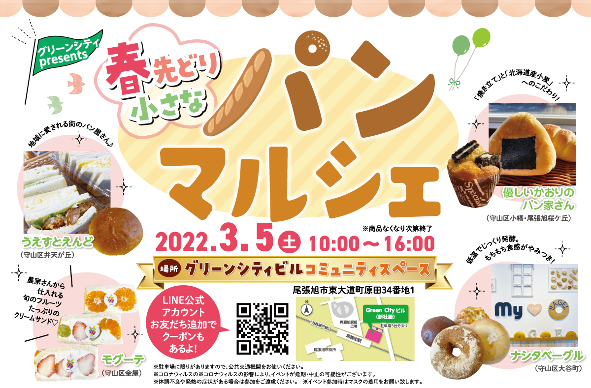 2022年3月5日(土)、グリーンシティプラザにて「パンマルシェ」を開催いたします。