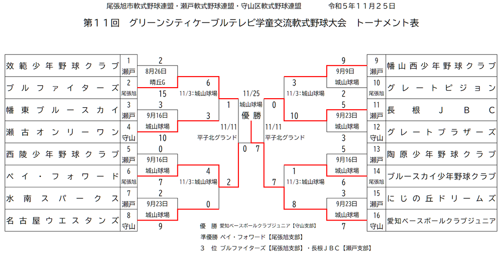 守山区・尾張旭市・瀬戸市の小学生野球チームがトーナメント方式で、対戦!