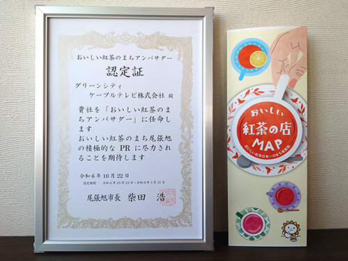 「尾張旭市紅茶のまちアンバサダー企業」認定のお知らせ 2024.11.07 お知らせ 2024年10月22日、グリーンシティケーブルテレビ株式会社は尾張旭市紅茶のまちアンバサダー企業の認定を受けました。 当社所在地である尾張旭市は、日本紅茶協会が認定する「おいしい紅茶の店」の『実店舗数』及び『人口比の店舗数』で日本一となっています。(2024年11月1日現在) エリア内の情報発信の拠点として、市の魅力である「紅茶」を最大限活用しながら市内外に発信し、尾張旭市を広く多くの人に知ってもらえる活動を進めてまいります。 尾張旭市紅茶のまちアンバサダーについての詳細はこちら お知らせ一覧に戻る