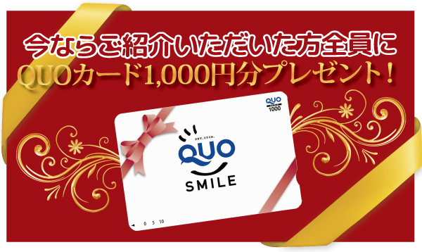 - QUOカードプレゼントはご紹介者様一世帯につき3件までとなります。