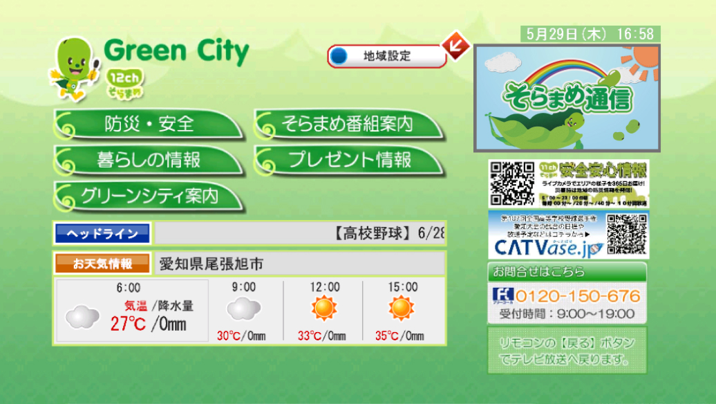 データ放送でそらまめチャンネルの番組情報をはじめ、防災・安全に関する情報、プレゼントなどの情報、プロ野球放送日程や、時刻表、イベント情報、休暇診察など暮らしに役立つさまざまな情報がご覧いただけます。