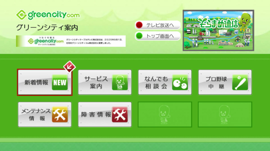グリーンシティからのサービスに関する情報やプレゼント情報、メンテナンス情報をはじめプロ野球放送日程などグリーンシティの情報をお届けします。