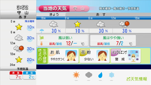日々の生活に欠かせない地元の天気や防災情報から、行楽や出張に役立つ情報まで、天気のことなら24時間いつでもお任せ。