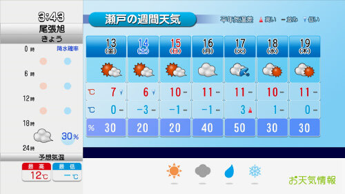 画面左脇のエリアでは、地元の天気予報や気温、雨の様子がいつでも確認できます。
