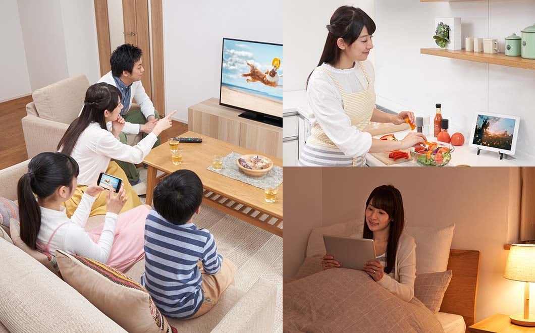 DLNA機能でスマホやタブレットと連携させ、おうちのどこでも地上波やケーブルテレビを観られます。