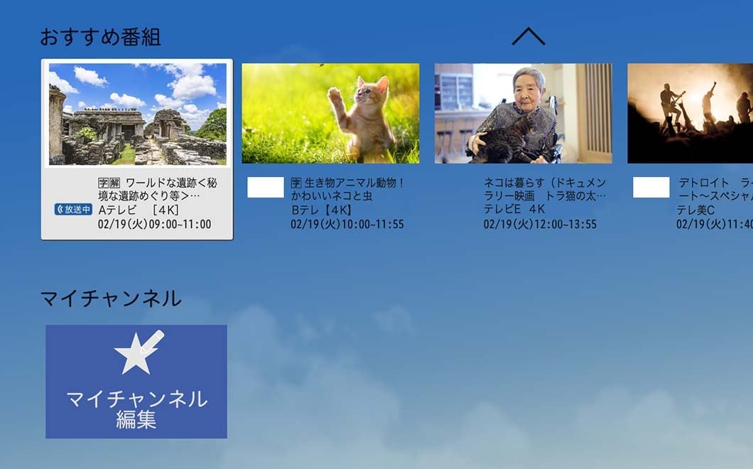 過去に観た番組や録画履歴から、自動でおすすめ番組をピックアップしてくれる「レコメンド機能」搭載!